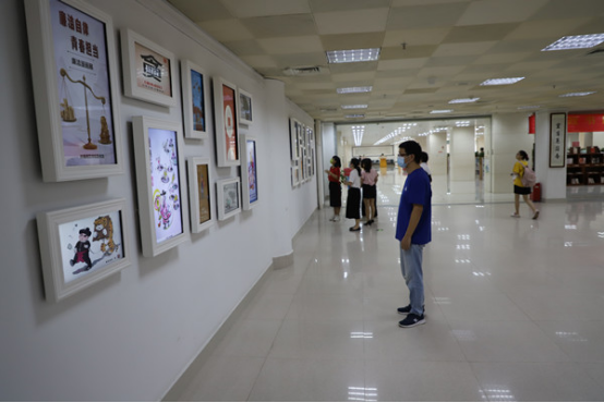 廉洁自律 青春担当——岭南师范学院图书馆廉洁漫画展。共展出《宝廉灯》《铲干净》《推磨图》《言行不一》《因贪成囚》《党纪国法》《别把脑袋丢了》《新武松打虎》《一念可以改变颜色》等经典廉洁宣传漫画多幅。作品均以“廉洁”为主题,通过寓意深刻的劝解漫画,以画承廉,画赋廉意,展示出了激浊扬清、令人警醒的廉洁文化意境,将廉洁教育内容生动、形象地传递给广大党员青年,警钟长鸣,筑牢廉洁拒腐的思想防线。廉洁漫画展以电子图片的形式,在图书馆二楼大厅电子相册处展播。