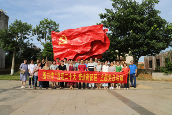 开展一次主题党日活动。图书馆全体党员前往湛江市红色文化教育基地(坡头区官渡镇遗风小学)开展主题党日活动。党员同志们在遗风小学广场处面对党旗重温了誓词,然后进入教育基地场馆参观学习。通过泛黄的历史照片、珍贵的历史资料和革命文物展示接受党史教育,感受中国共产党人为民族独立、人民解放事业在广东南路的艰苦斗争历史。
