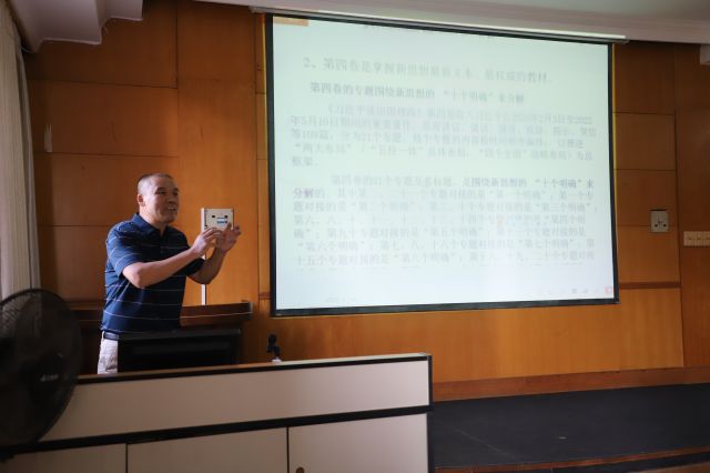 10月12日,图书馆邀请学校理论宣讲团成员马克思主义学院教授童小彪博士于五楼视听室开展《习近平谈治国理政》第四卷宣讲,深入解读《习近平谈治国理政》第四卷的丰富内涵和精神实质。图书馆全体馆员参加,会议由图书馆党总支书记李健彬主持。
