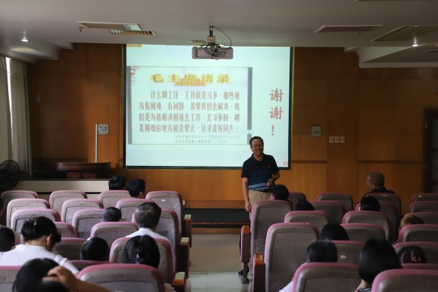 童小彪以《在不断创新中彰显真理力量——深入学习<习近平谈治国理政>第四卷》为题,从主要内容、重要意义和学习方法等三方面展开讲解。童小彪围绕《习近平谈治国理政》第四卷的新思想、新特点、新重点、新亮点与五大根本问题、“十个明确”等重要内容展开报告,同时结合晚清至今的国史与世界史,对现代流行的某些错误的政治观、历史观作了清晰而合理的讲解与辨析。报告思路清晰,内容紧扣主题,内涵丰富,引领全体馆员正视历史与政治,为大家塑造了正确的政治观,从而深深地感悟到中国共产党为中华民族伟大复兴作出的巨大贡献。在报告最后,童小彪引用毛泽东主席的话,激励同志们迎难而上,勇于斗争,解决问题。
