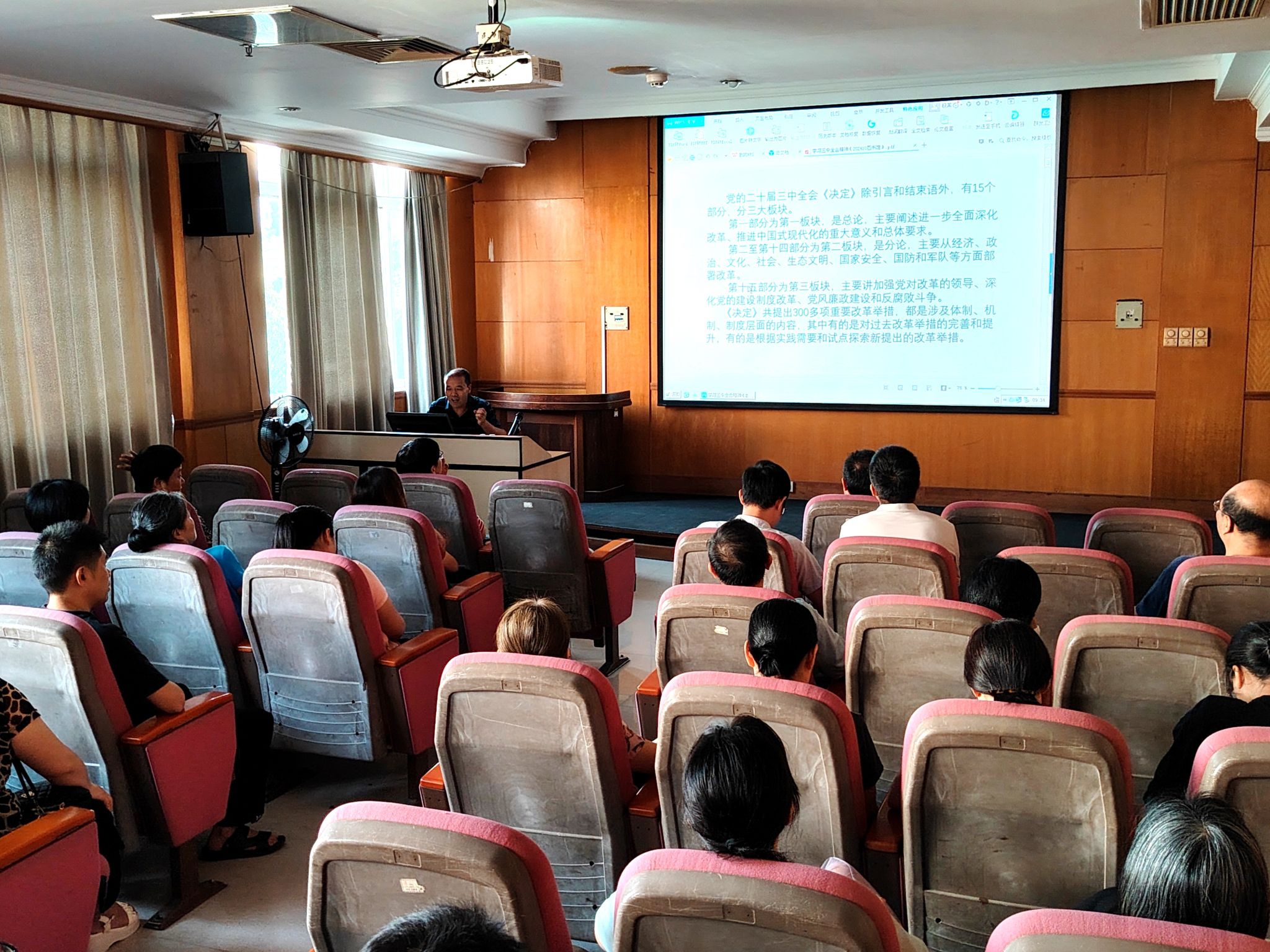 图书馆党总支书记李健彬对童小彪的精彩宣讲表示衷心感谢,并希望全体教职工能够以此次宣讲为契机,进一步加深对党的二十届三中全会精神的理解和把握,紧密结合自身实际,将学习成果转化为推动工作的强大动力和实际成效。