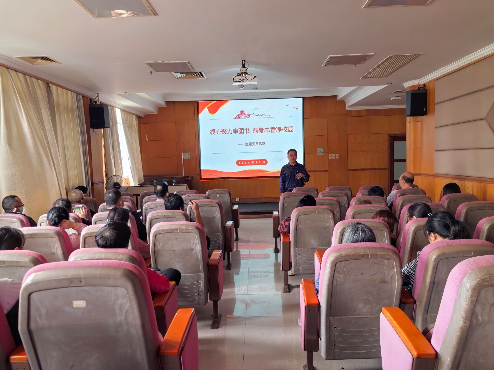 活动伊始,图书党总支李健彬书记发表了讲话,强调了图书作为传播知识、塑造灵魂的重要媒介,在加强校园文化建设中的核心作用。他指出,图书审查工作不仅是对图书质量的把关,更是对意识形态领域的守护,要求全体党员要提高政治站位,认真履行审查职责。